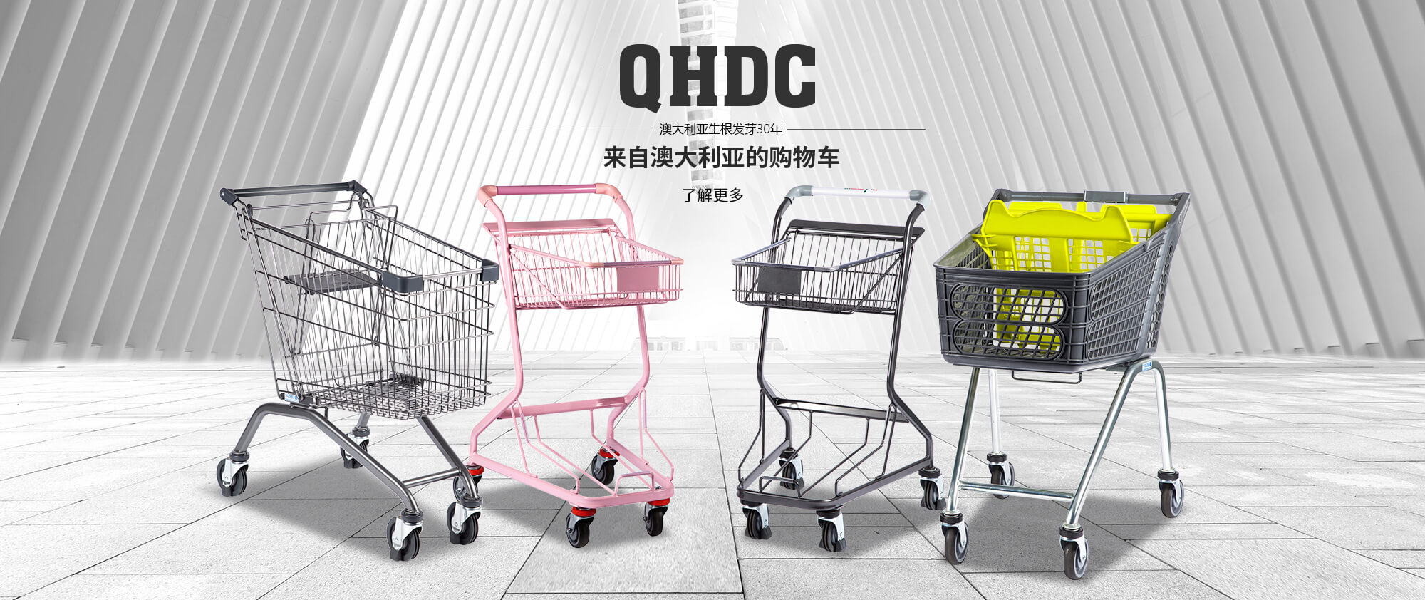 我們公司在澳大利亞生根發(fā)芽30年,現(xiàn)如今在澳洲購(gòu)物車(chē)市場(chǎng)占有率達(dá)到90%以上。QHDC公司生產(chǎn)的購(gòu)物車(chē),在澳洲就是為高端需求界定了標(biāo)準(zhǔn)。